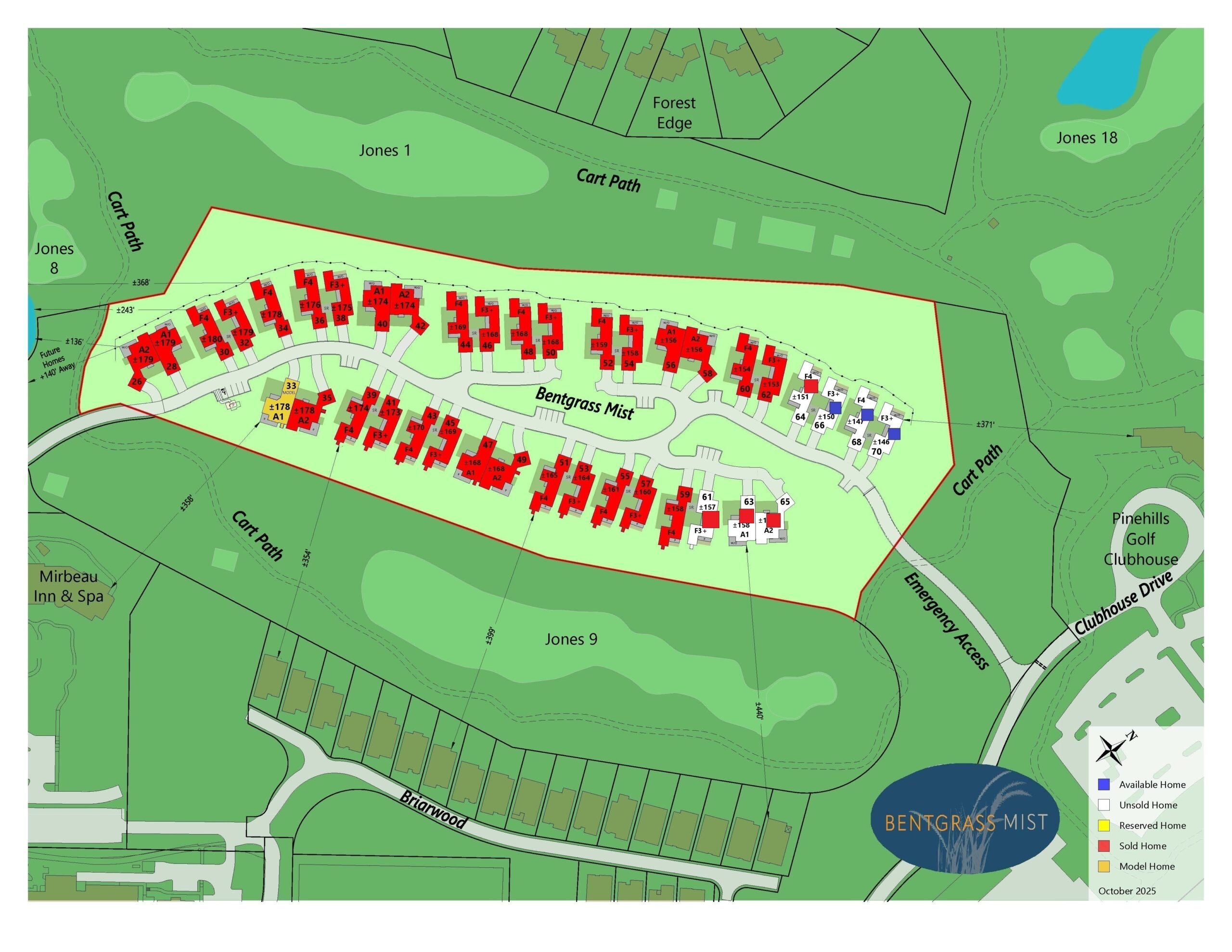 Bentgrass Mist is featuring two award-winning Fresco homes, Fresco Three+ and Fresco Four. The homes range between 2,200 and 2,500 square feet, with open floorplans, light-filled rooms and one-floor living, each with private courtyard and outdoor deck. Oh, did we mention that most of the homes have wonderful views of the championship golf course here at The Pinehills and require very little maintenance? But don’t take our word for it, call us and come see for yourself.